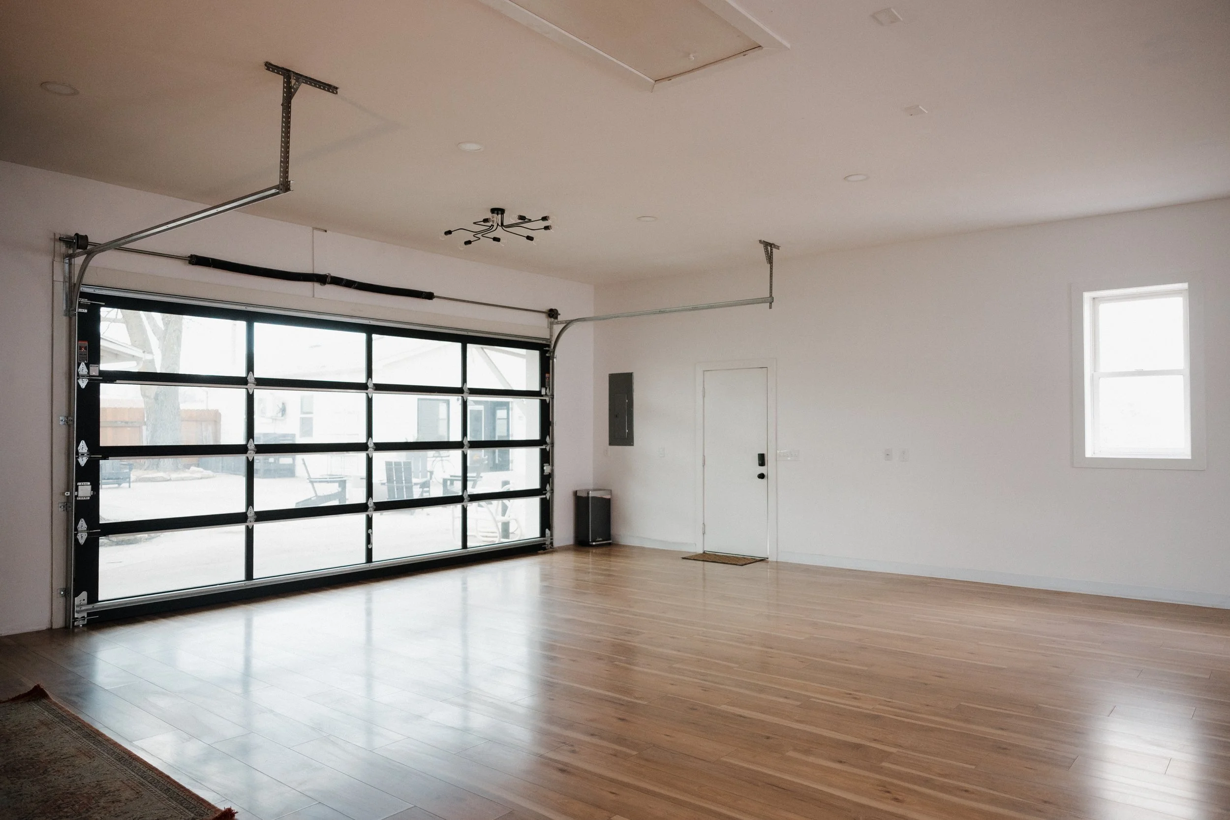 Where charm meets function—an open, minimal space for intimate gatherings, complete with a garage door that opens to the courtyard for seamless indoor–outdoor flow.